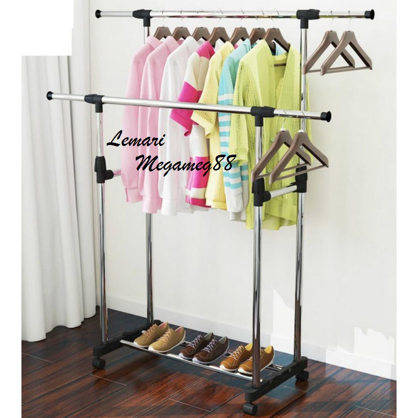 Jual Gantungan Baju 2 Tingkat Ada Roda Indonesia Shopee Indonesia