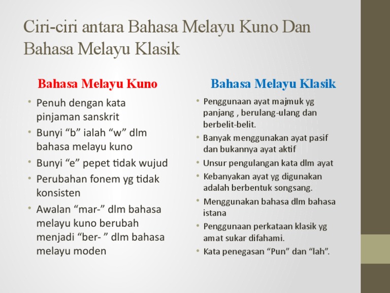 Perbezaan Ciri Ciri Antara Bahasa Melayu Kuno Dan Bahasa Melayu Pdf